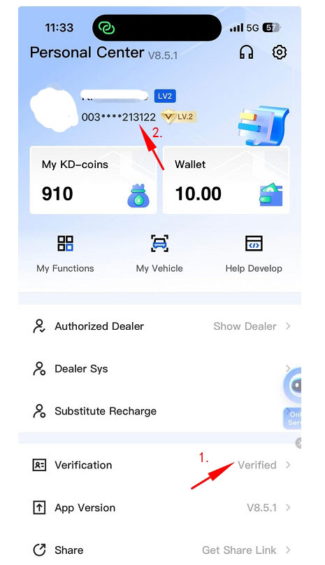 3. Provide your phone number that is registered with KD App to us.